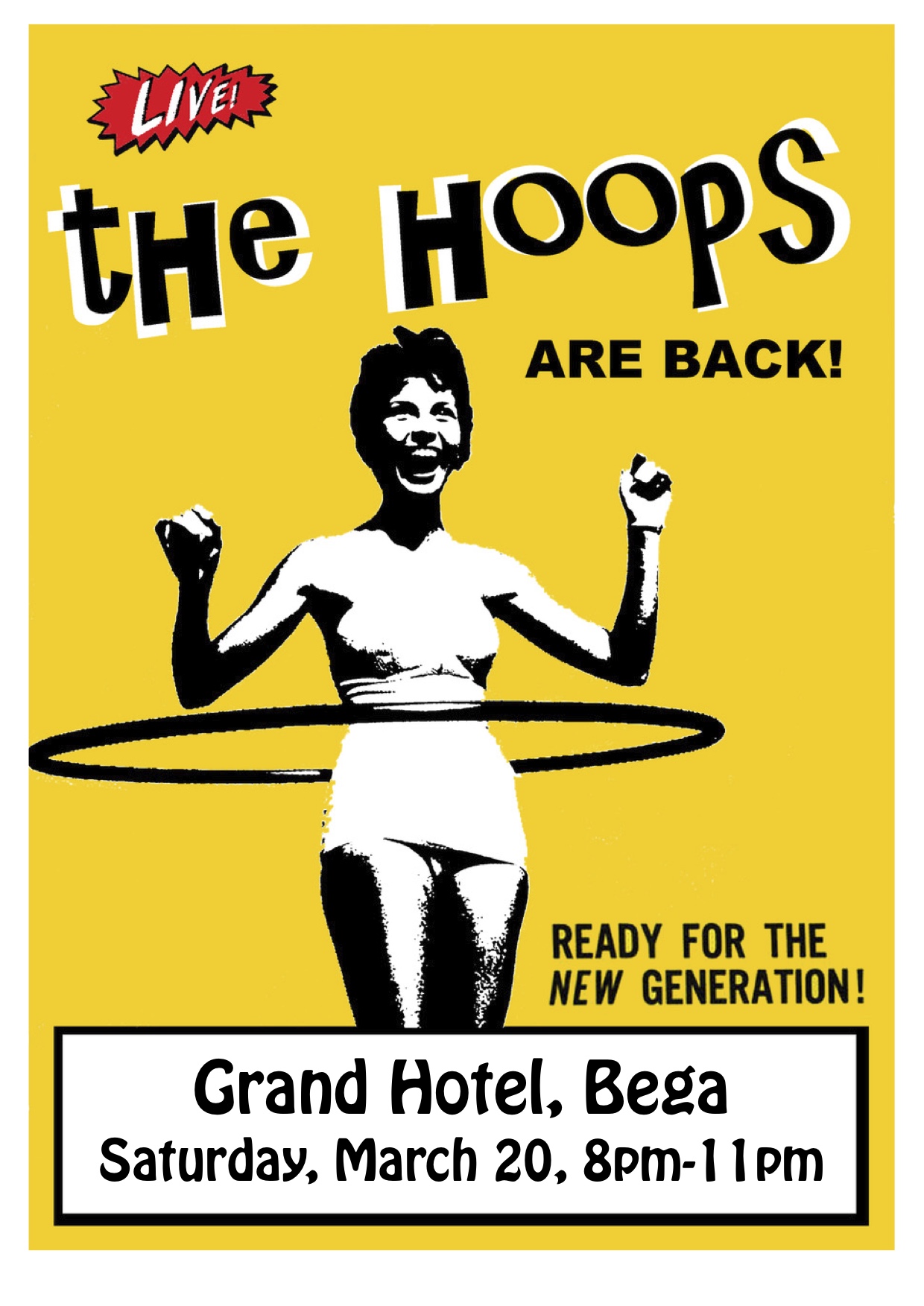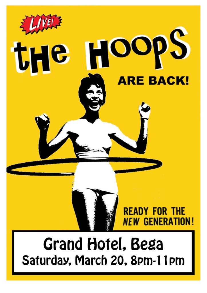 The streets of Cobargo rocking out to The Hoops, 2014 Photo courtesy of the Bega District News.At the Cobargo Lazy Lizard Bra Show, to raise awareness of breast cancer, 2014. Photo courtesy of the Bega District News.At the Cobargo Lazy Lizard Bra Show, to raise awareness of breast cancer, 2014. Photo courtesy of the Bega District News.The Hoops with the new 2011 lineup, L-R Lyndon, Jamie, Pete and Syd