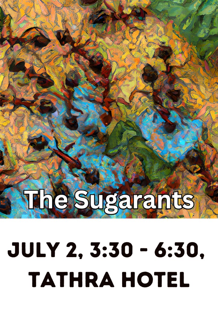 The Sugarants — Tathra Hotel, Sunday, October 12, 4pm-7pm. The Sugarants — Theatre Twyford, Merimbula, Saturday, November 1, 7.30pm. The Sugarants — Lions Carols by Candlelight, Pambula Sporting Complex, Friday, December 12, from 6pm. The Sugarants — Longstocking Brewery, Pambula, February 8, 1 – 4pm.. The Hoops and The Sugarants ... Continue reading →